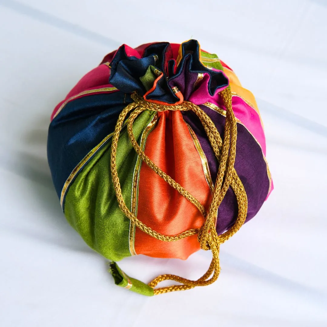 Unique round-shaped circus potli celebrating India’s vibrant entertainment heritage – perfect for special occasions and gifting.