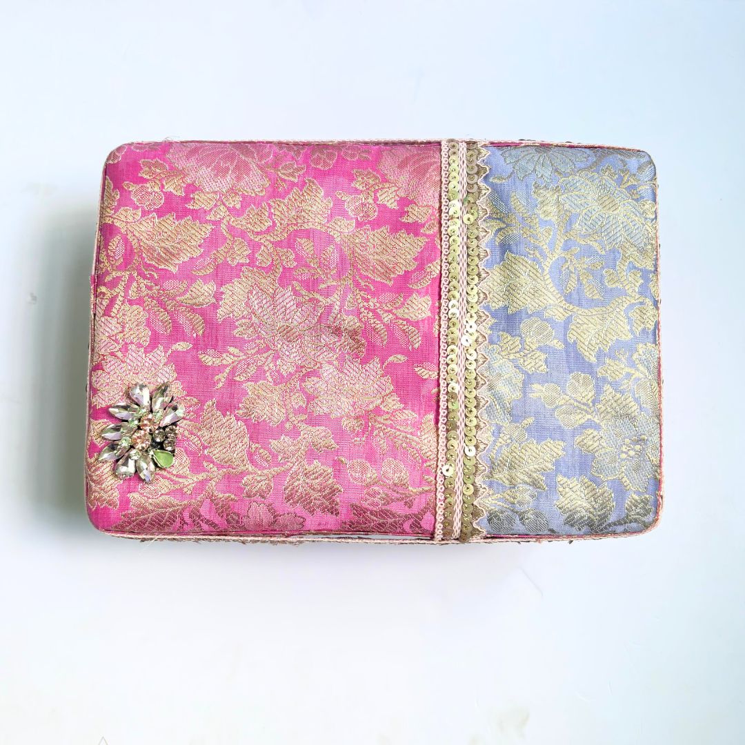 Graceful, vibrant, and consciously handcrafted, the Pink Brocade Box by Kottanz brings a traditional charm to your gifting style. Designed with a premium pink brocade fabric and a sturdy handcrafted base, this box combines festive elegance with sustainable values perfect for weddings, festivals, or return gifting.