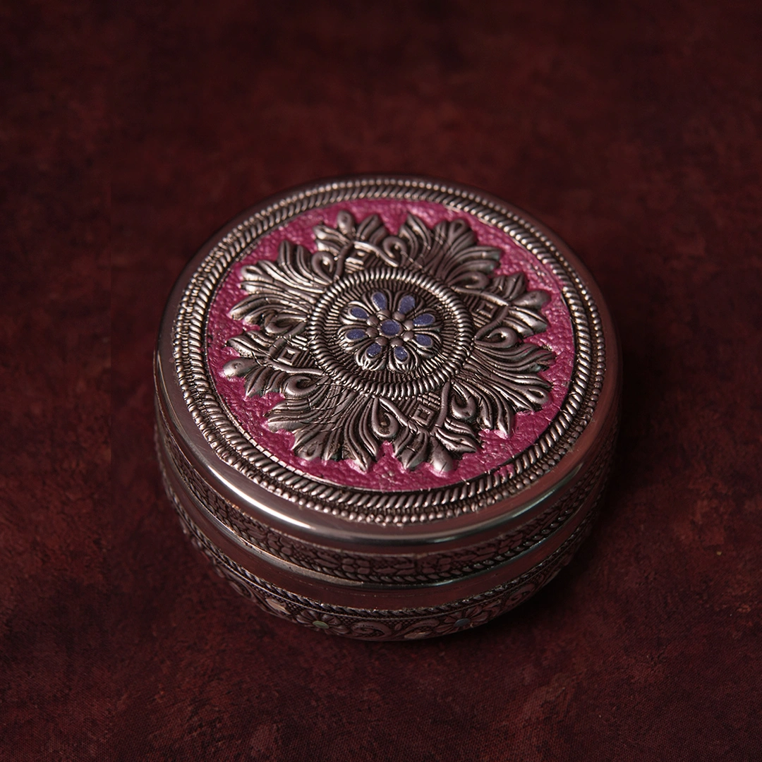 Delicate pink enamelwork meets age-old Indian craft. This petite Minakari box is a treasure in itself — perfect for gifting, storing, and cherishing for years to come.
