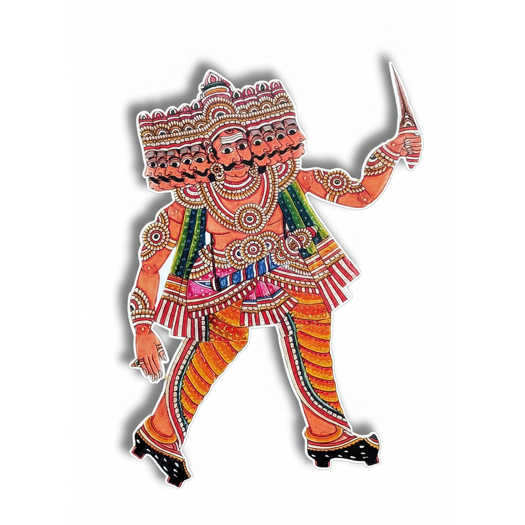Intricately painted wooden Ramayana character cutout featuring vibrant traditional artwork, perfect for Dussehra celebrations and cultural storytelling displays.